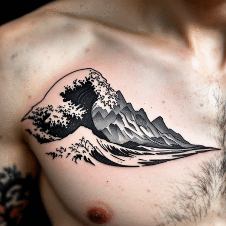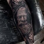 Tetování z filmů a pohádek postavička Krakonoš, příroda hory, větvička na lýtko