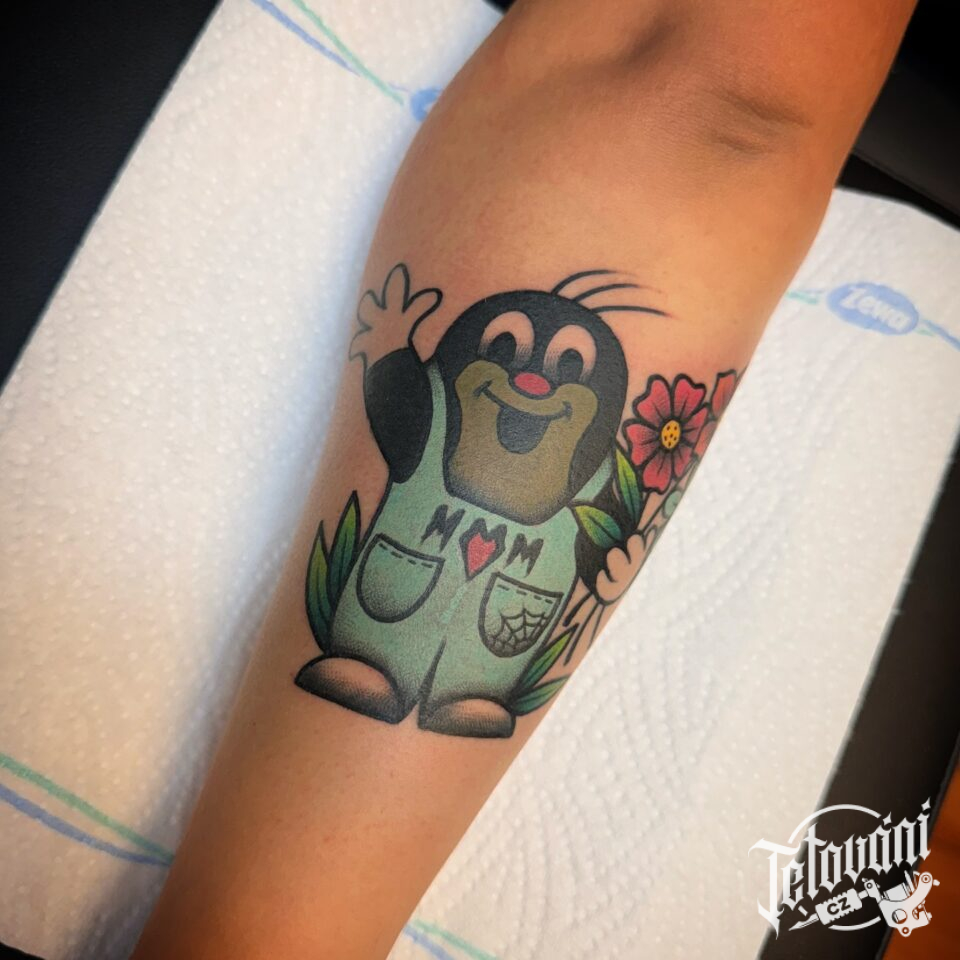 Tetování z filmů a pohádek postavička Krteček na předloktí