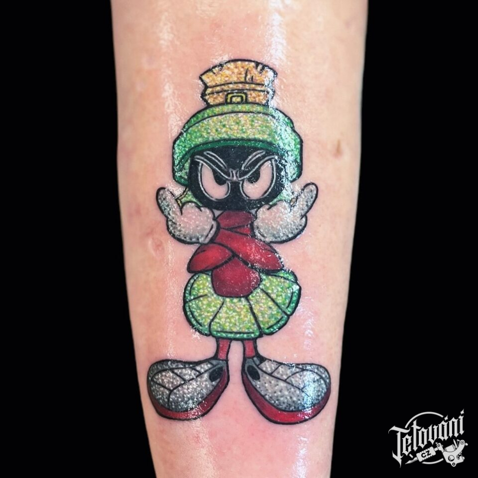 Tetování z filmů a pohádek postavička Marťan Marvin na předloktí