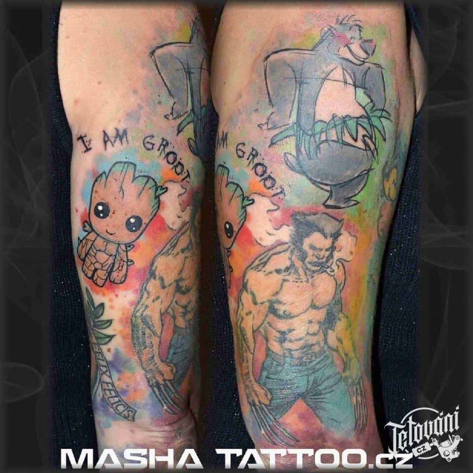 Tetování z filmů a pohádek postavička, Marvel, Groot, Volverin na rameno