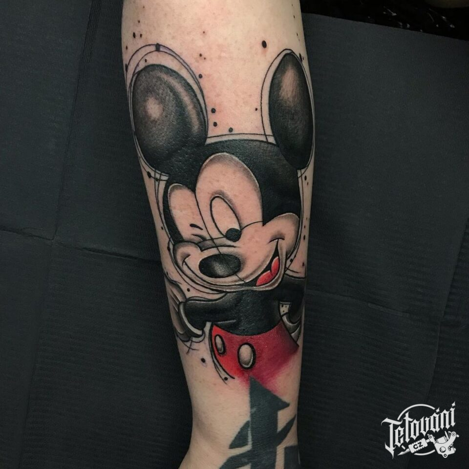 Tetování z filmů a pohádek postavička Mickey Mouse na předloktí