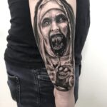 Tetování z filmů a pohádek postavička Mimoň, portrét náboženství na předloktí