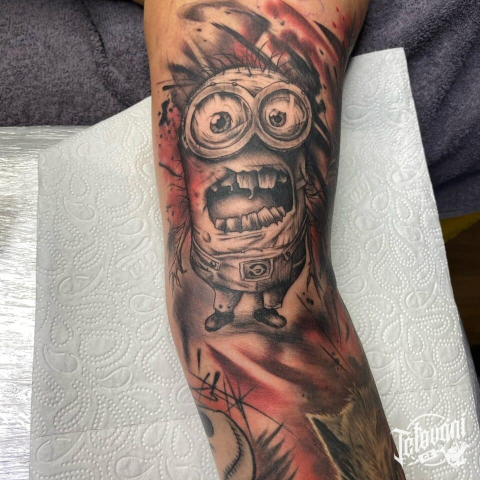 Tetování z filmů a pohádek, postavička Mimoňe na paži