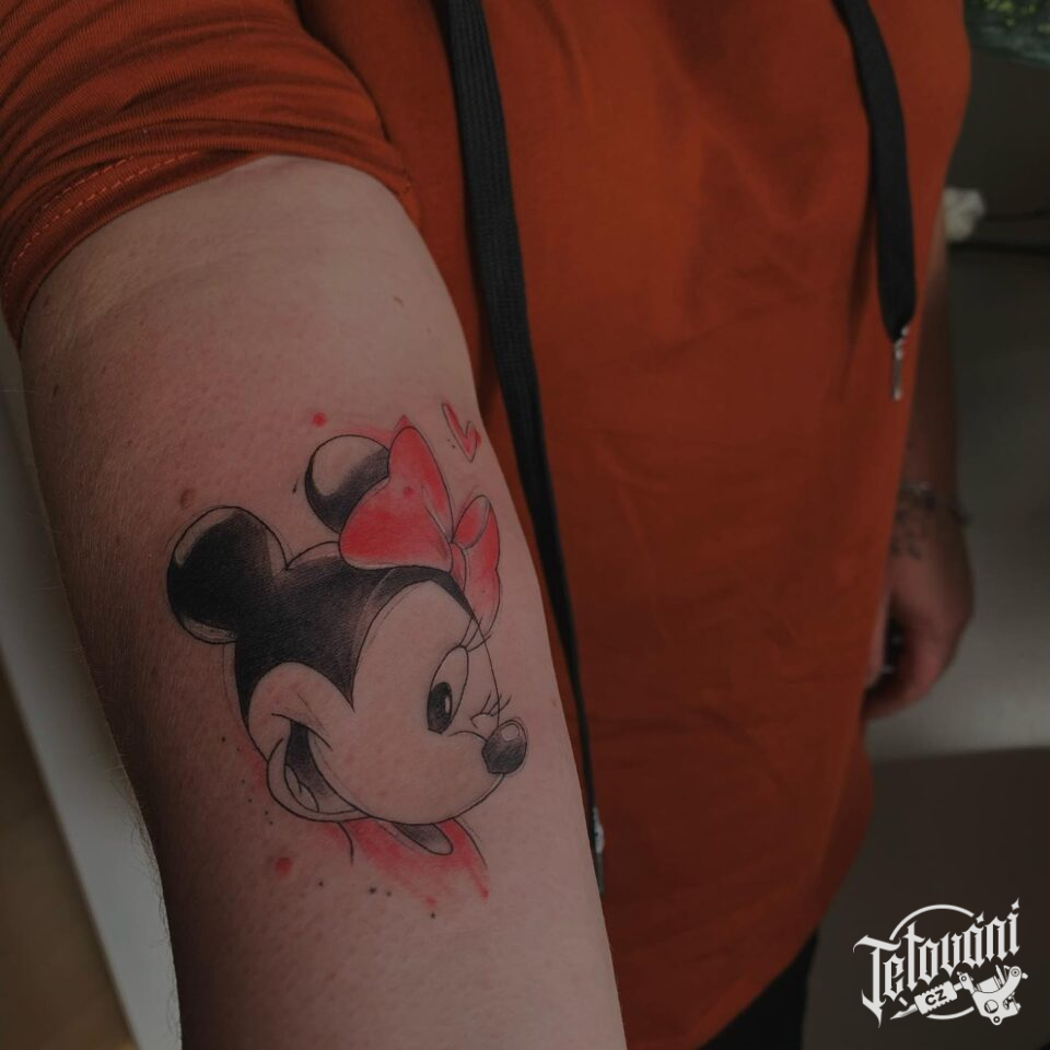 Tetování z filmů a pohádek postavička Minie na předloktí