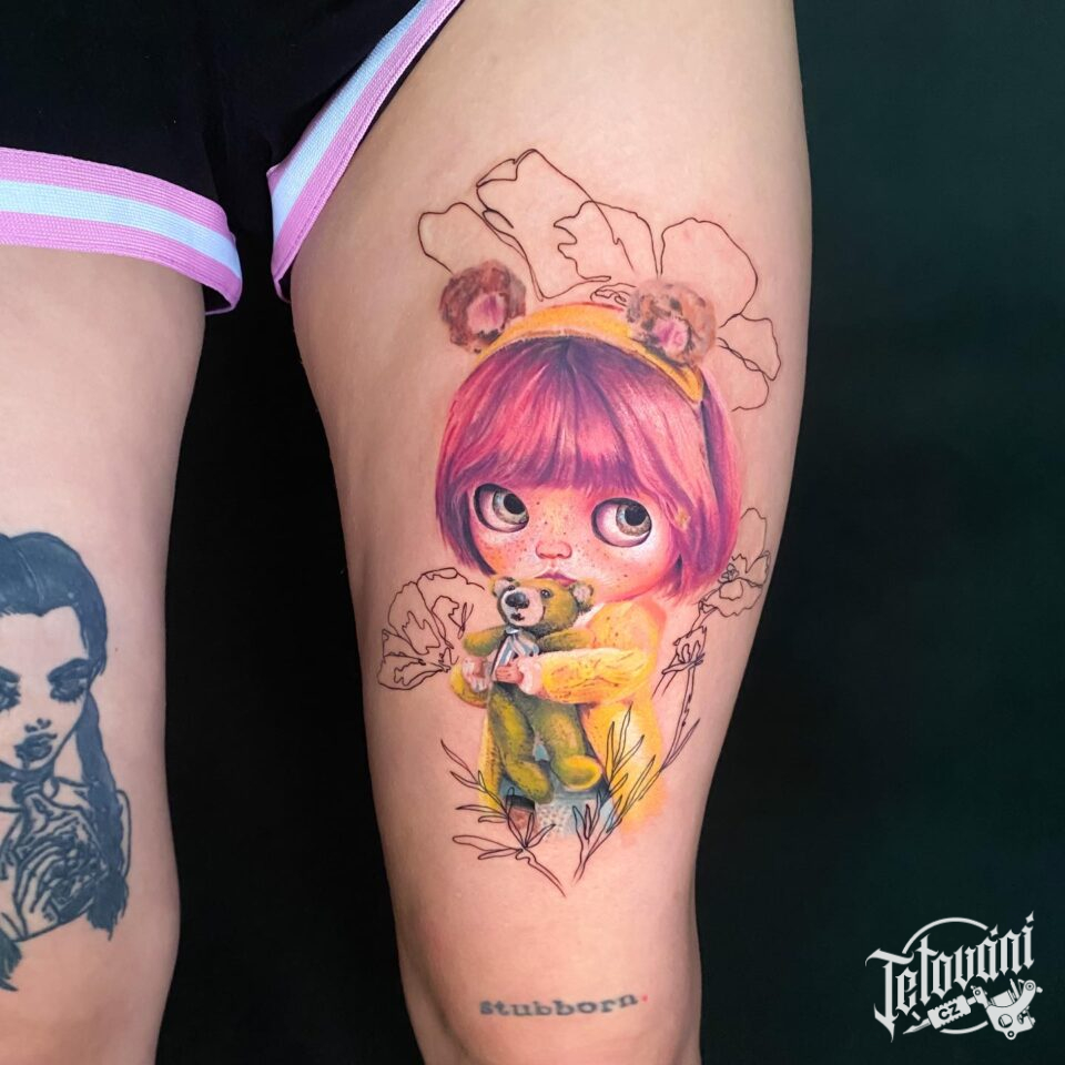 Tetování z filmů a pohádek, postavička panenka na stehno