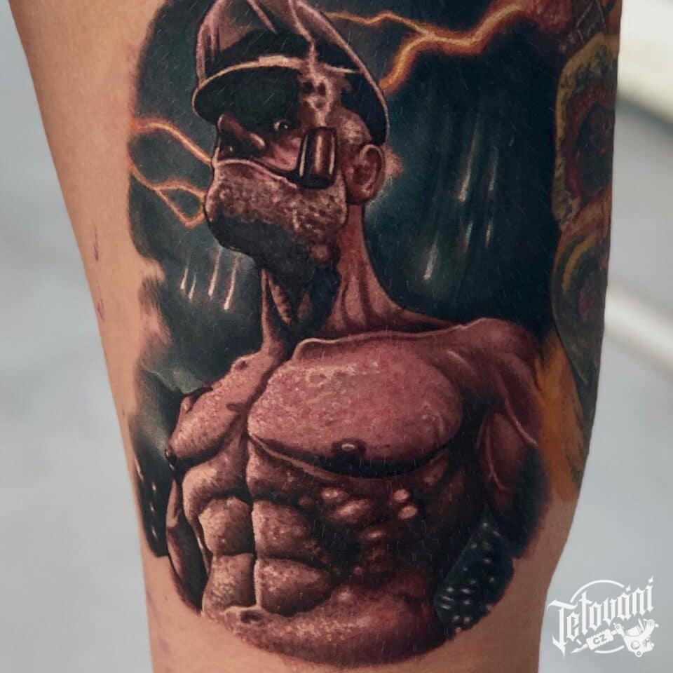 Tetování z filmů a pohádek, postavička Pepek Námořník na bok stehna