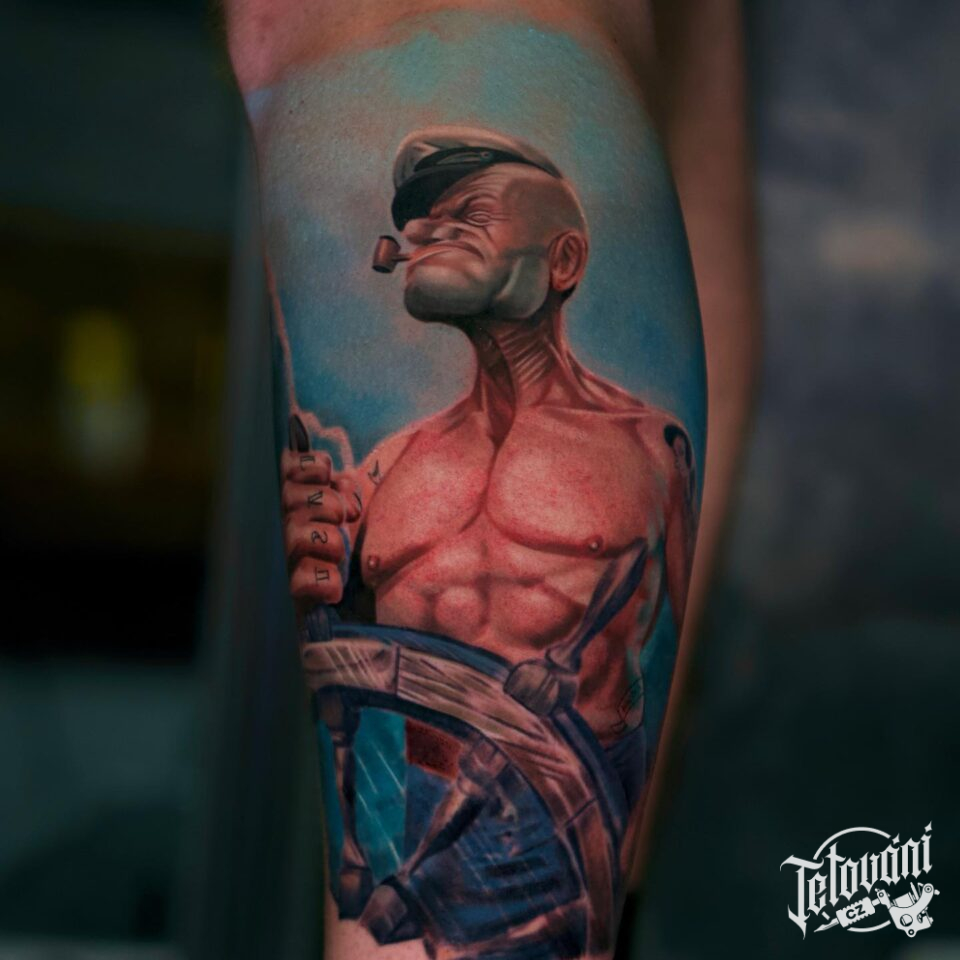 Tetování z filmů a pohádek postavička, Pepek námořník na lýtko
