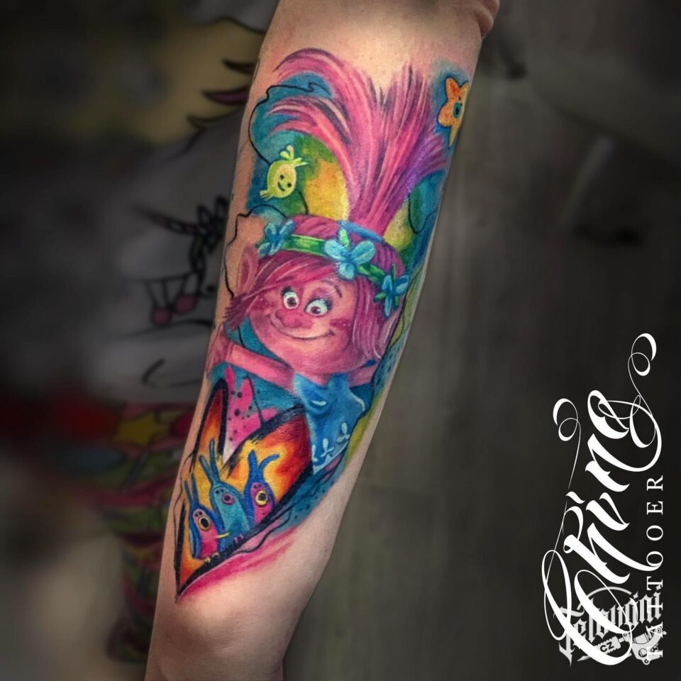 Tetování z filmů a pohádek, postavička Poppy na paži