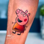 Tetování z filmů a pohádek, postavička, prasátko Peppa na lýtku