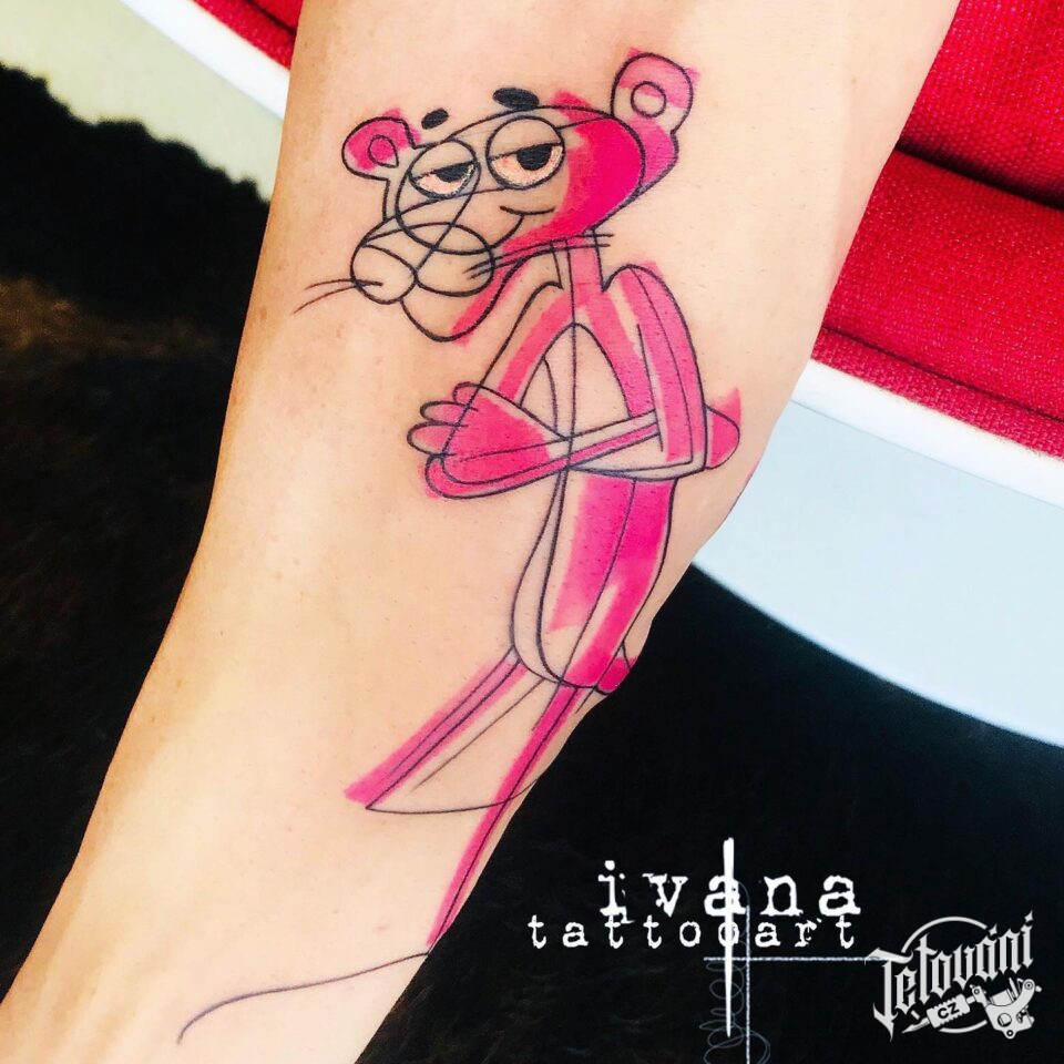 Tetování z filmů a pohádek, postavička, růžový panter na předloktí