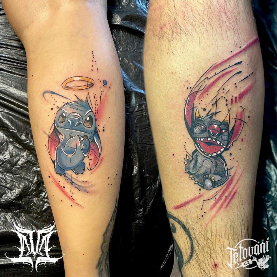 Tetování z filmů a pohádek, postavička Stitch na lýtko