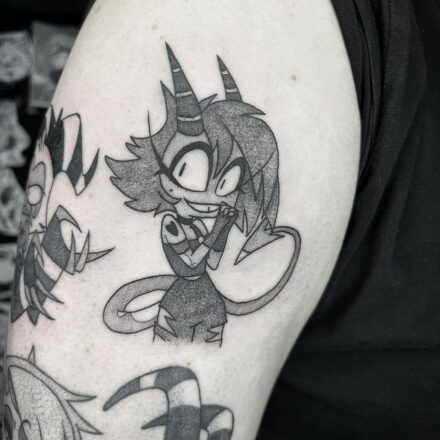 Tetování z filmů a pohádek postavička z pokémonů na holeň