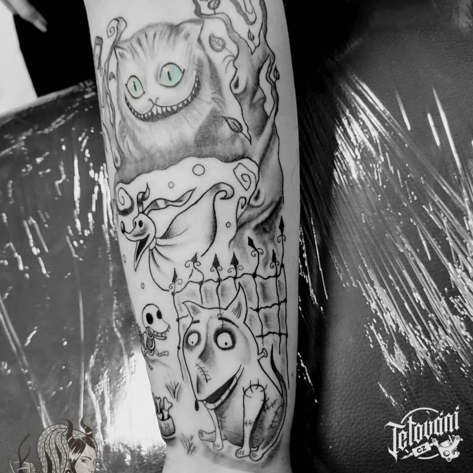Tetování z filmů a pohádek, postavičky a šklíba na předloktí