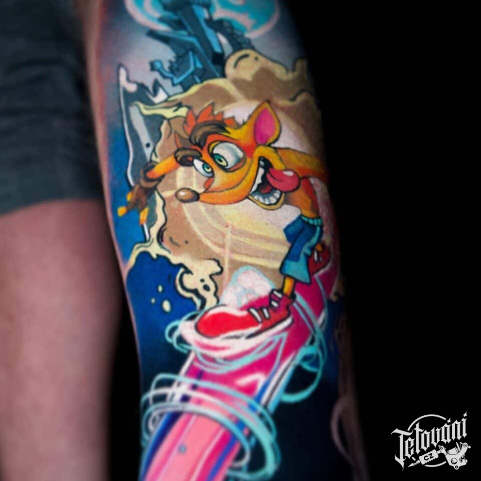 Tetování z filmů a pohádek, postavičky anime na holeň