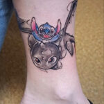 Tetování z filmů a pohádek, postavičky Bezzubka a Stitch na noze