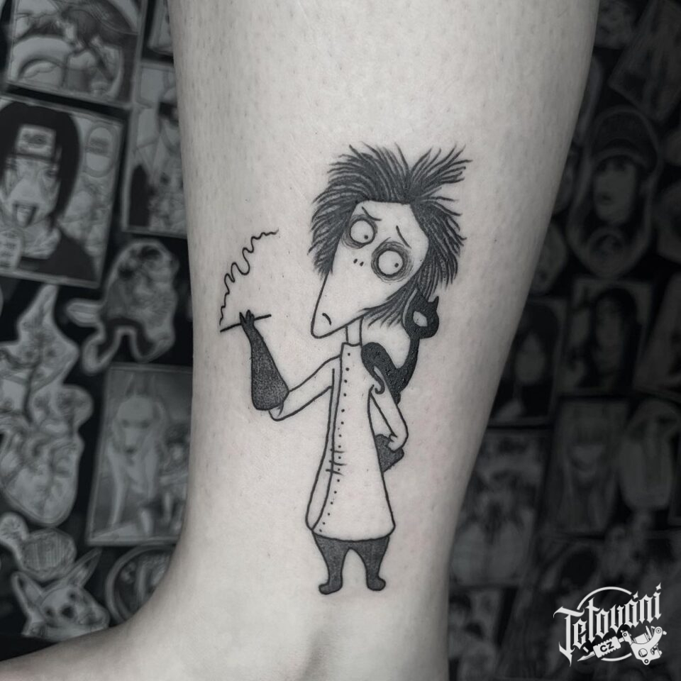 Tetování z filmů a pohádek, postavičky, kočka, zvíře na lýtko
