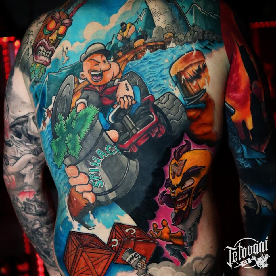Tetování z filmů a pohádek postavičky, Pepek námořník na záda