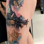 Tetování z filmů a pohádek postavičky Tom a Jerry na bok stehna