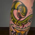 Tetování z filmů a pohádek, postavičky z anime na lýtku