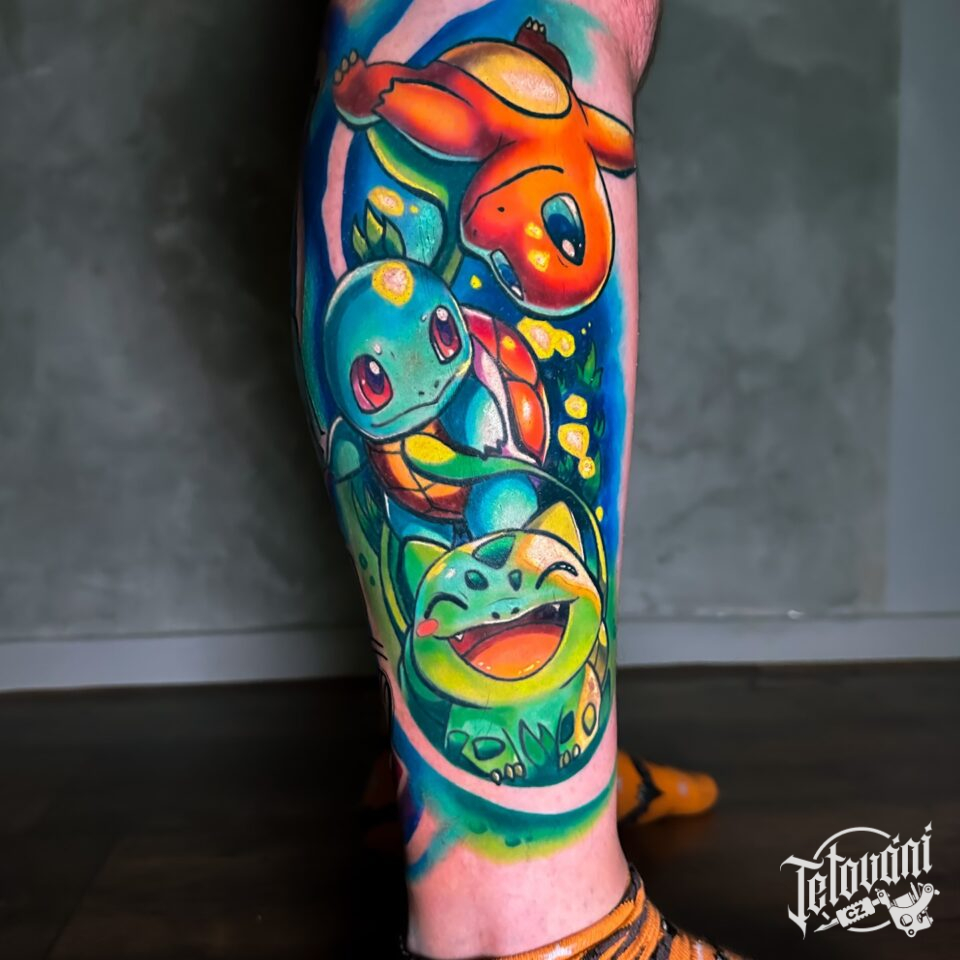 Tetování z filmů a pohádek, postavičky z Pokemona na lýtko