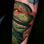 Tetování z filmů a pohádek postavičky želvy Ninja, portrét na předloktí