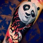 Tetování z filmů a pohádek, postavičky, zvíře panda, nápisy na lýtko