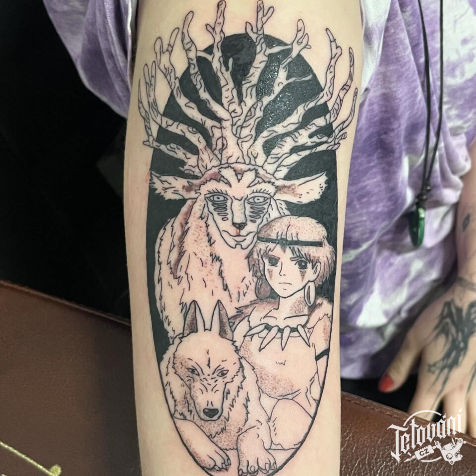 Tetování z filmů a pohádek Princezna Mononoke na rameno