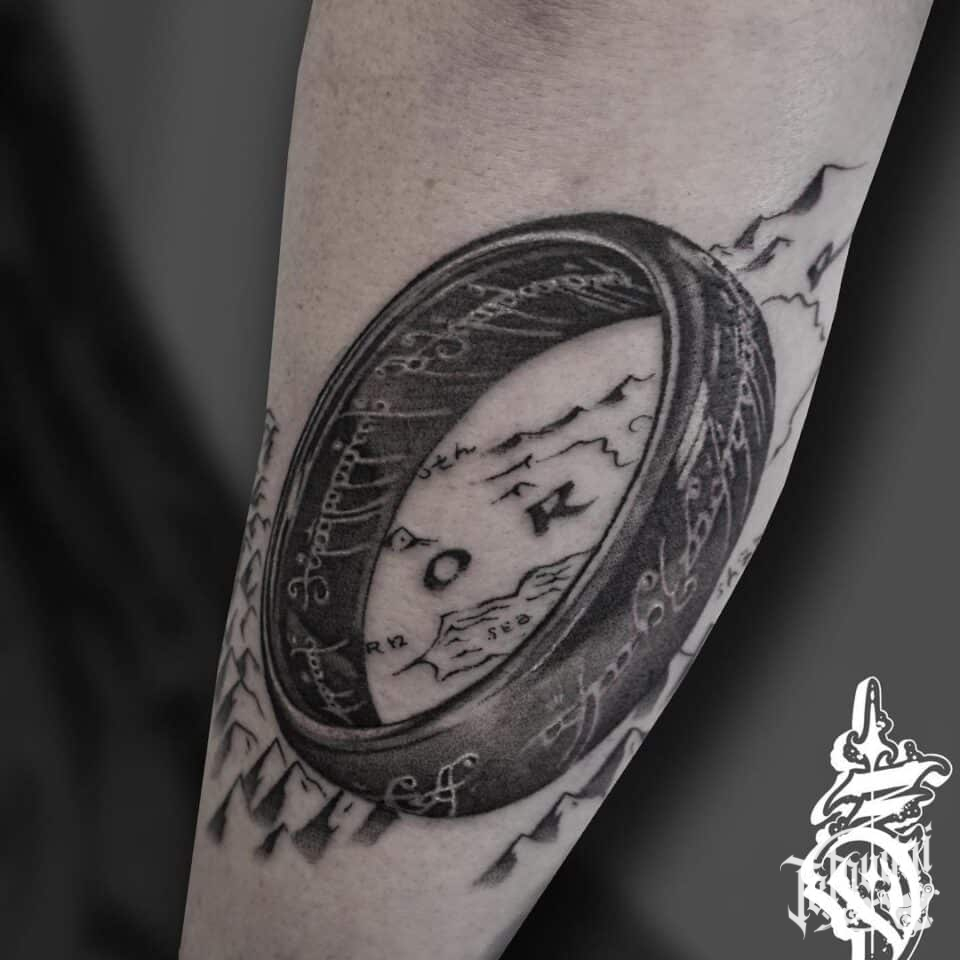 Tetování z filmů a pohádek, prsten z Pána prstenů na předloktí