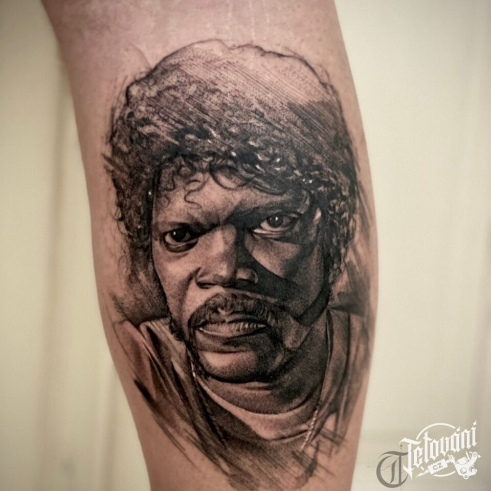 Tetování z filmů a pohádek, Pulp Fiction, portrét na lýtku