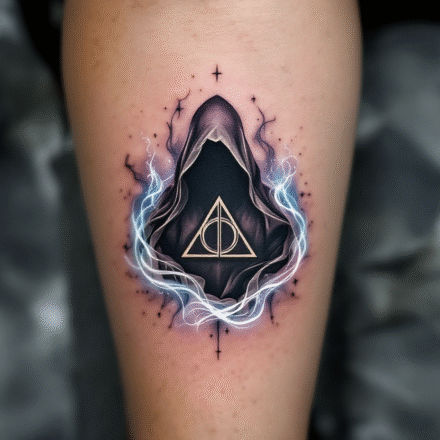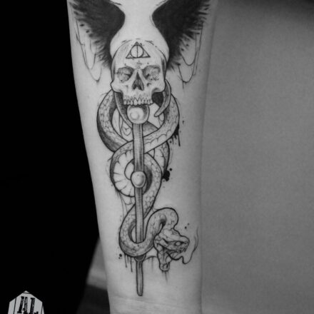 Tetování z filmů a pohádek, relikvie smrti Harry Potter na předloktí