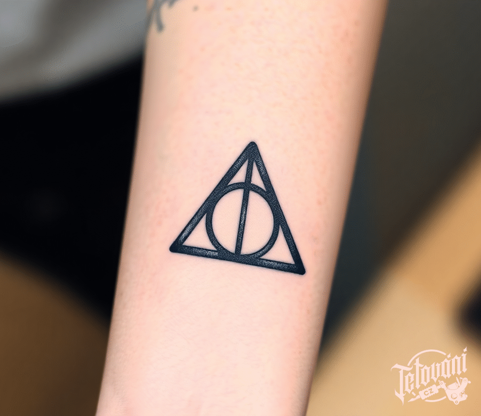 Tetování z filmů a pohádek, relikvie smrti na předloktí