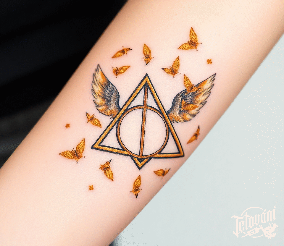 Tetování z filmů a pohádek, relikvie smrti na předloktí