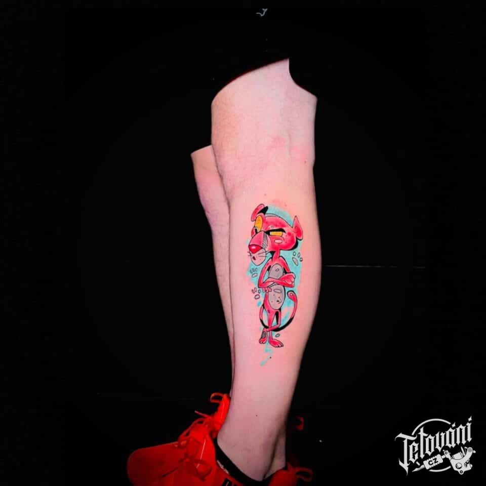 Tetování z filmů a pohádek Růžový Panter, postavička na lýtko