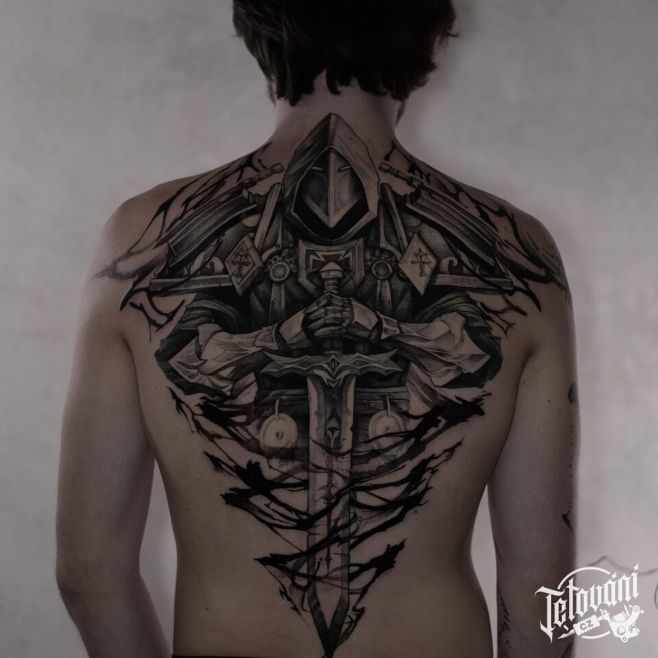 Tetování z filmů a pohádek, rytíř na zádech