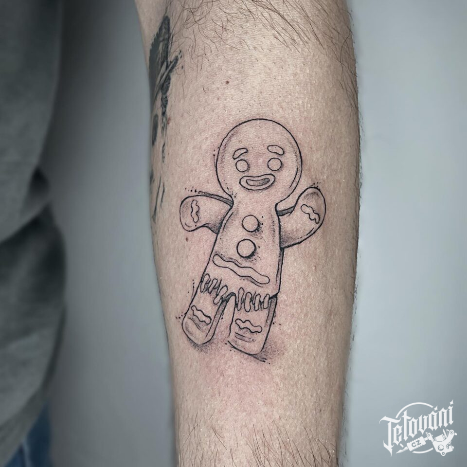 Tetování z filmů a pohádek Shrek, postavička Perníček na předloktí