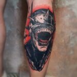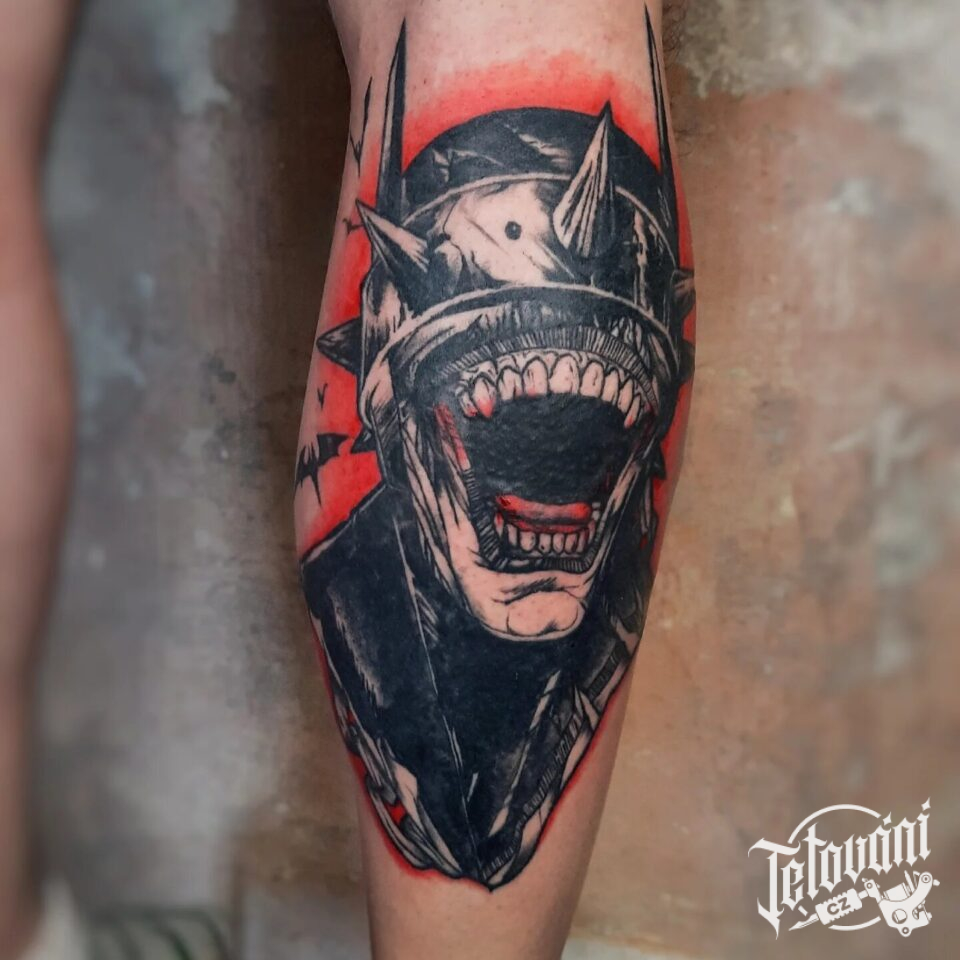 Tetování z filmů a pohádek smějící se Batman na lýtko