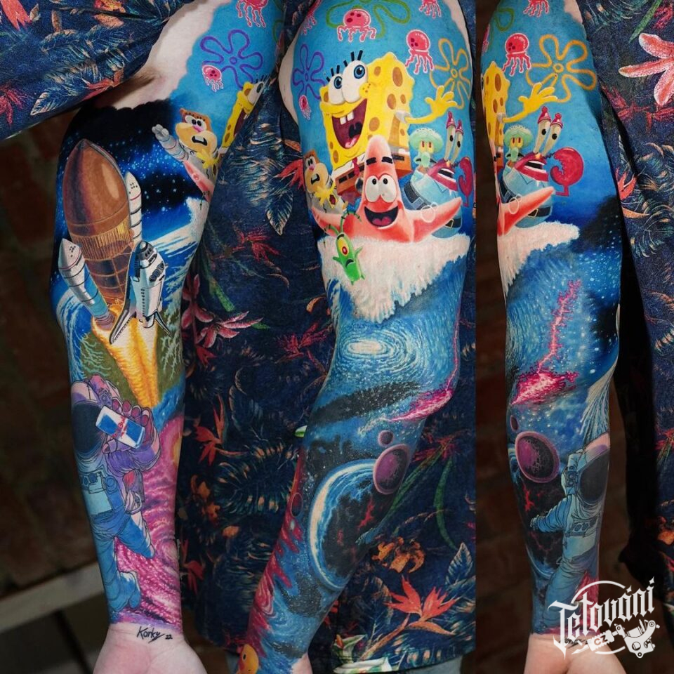 Tetování z filmů a pohádek, Spongebob, Vesmír, rukáv