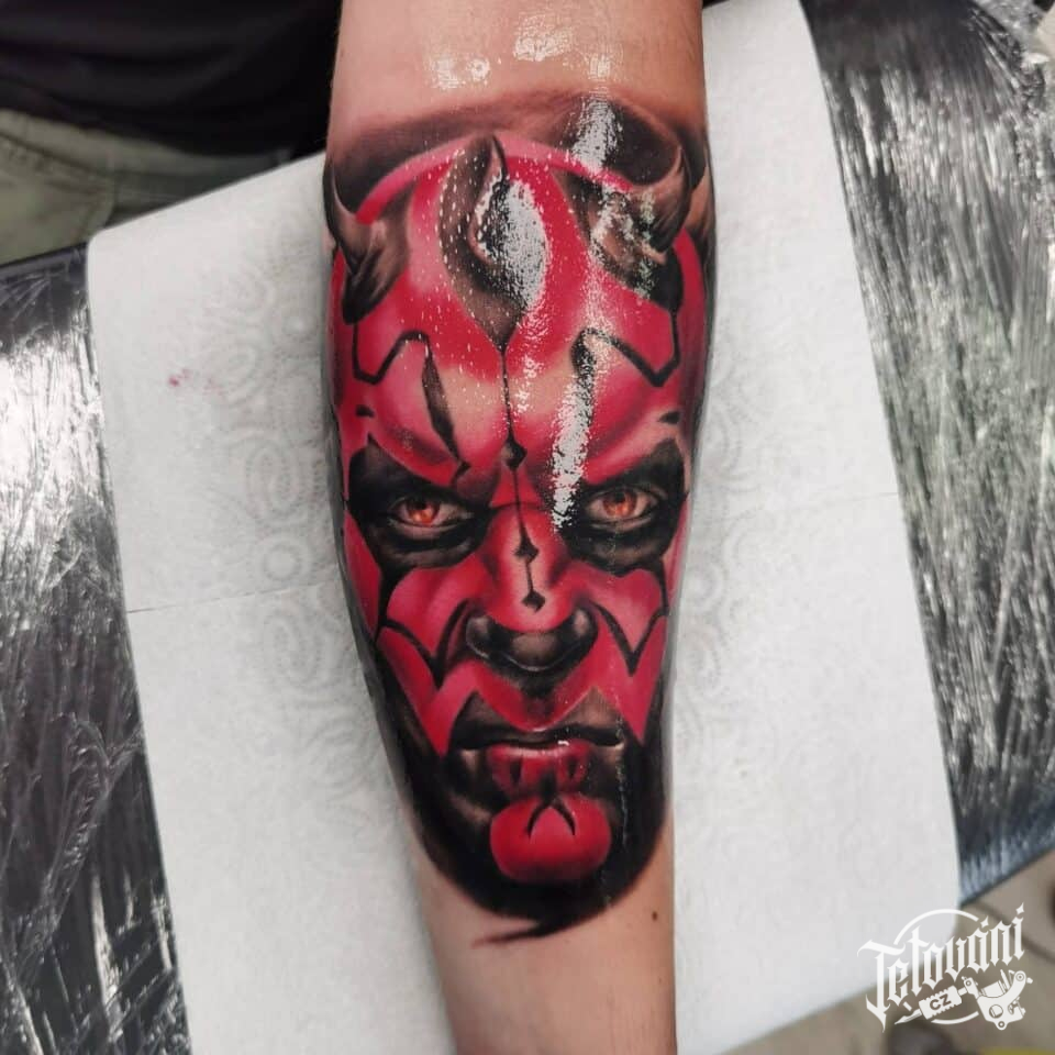 Tetování z filmů a pohádek Star Wars, portrét Dartha Maula na předloktí