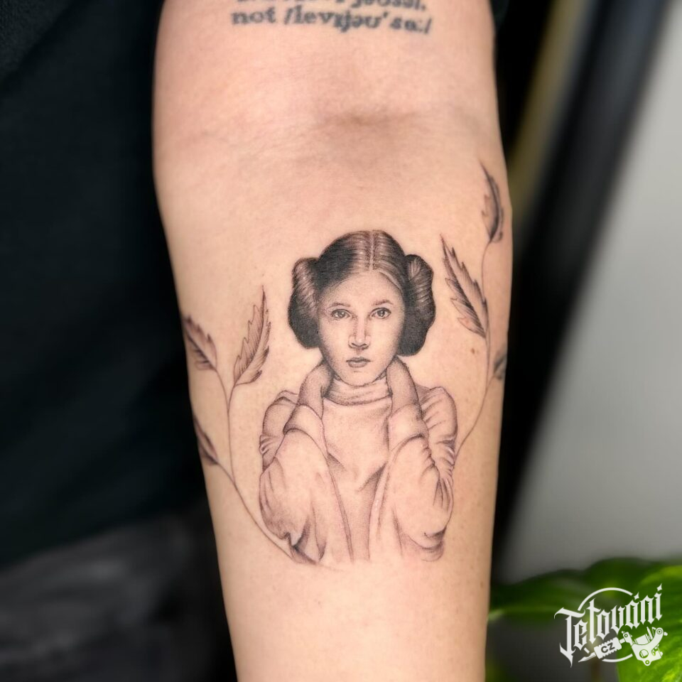 Tetování z filmů a pohádek Star Wars, portrét na předloktí