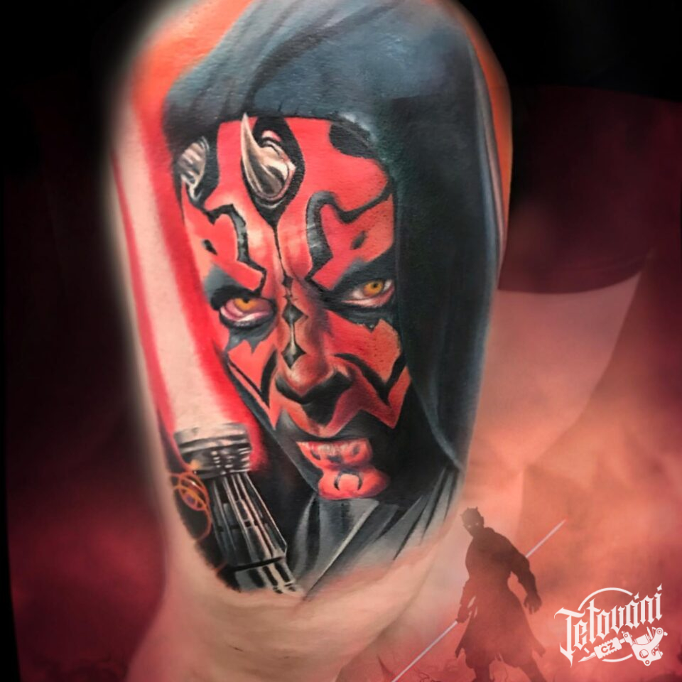 Tetování z filmů a pohádek Star Wars, postavička Darth Maul na stehno