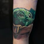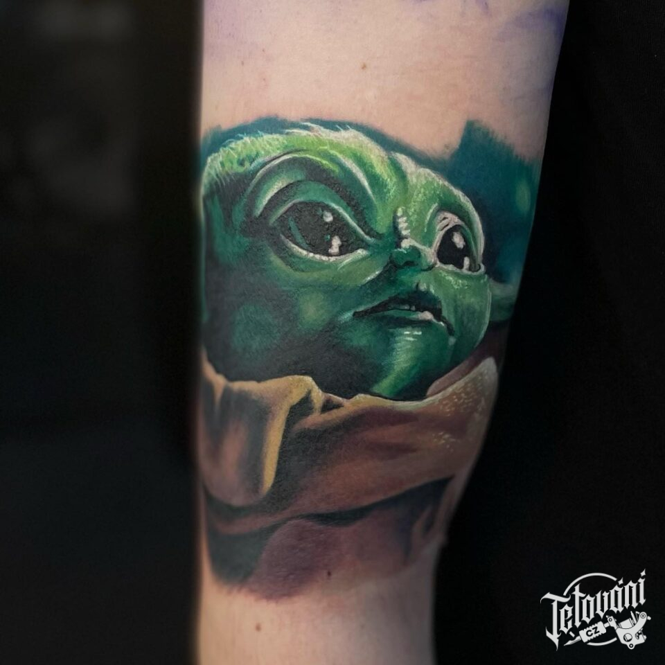 Tetování z filmů a pohádek Star Wars, postavička Yoda na předloktí