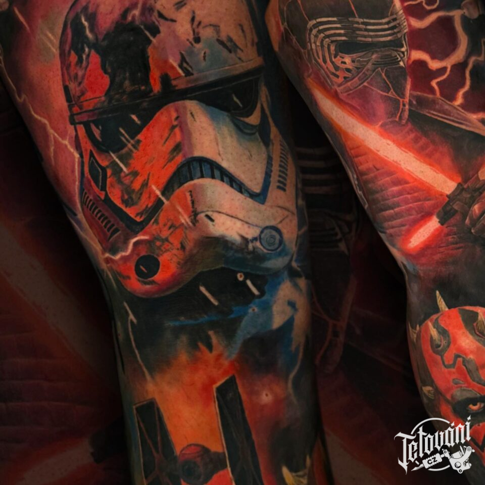 Tetování z filmů a pohádek Star Wars, postavičky na stehna