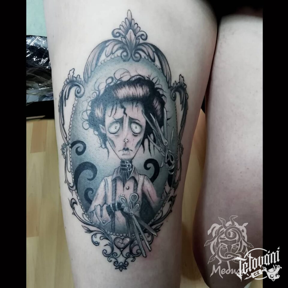 Tetování z filmů a pohádek Střihoruký Edvard na stehno