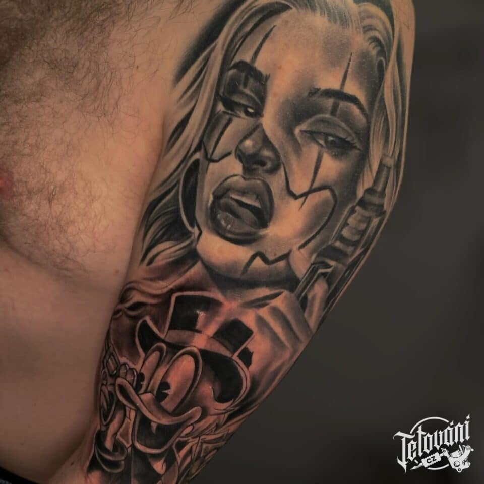 Tetování z filmů a pohádek, Strýček Skrblík a portrét ženy na rameni