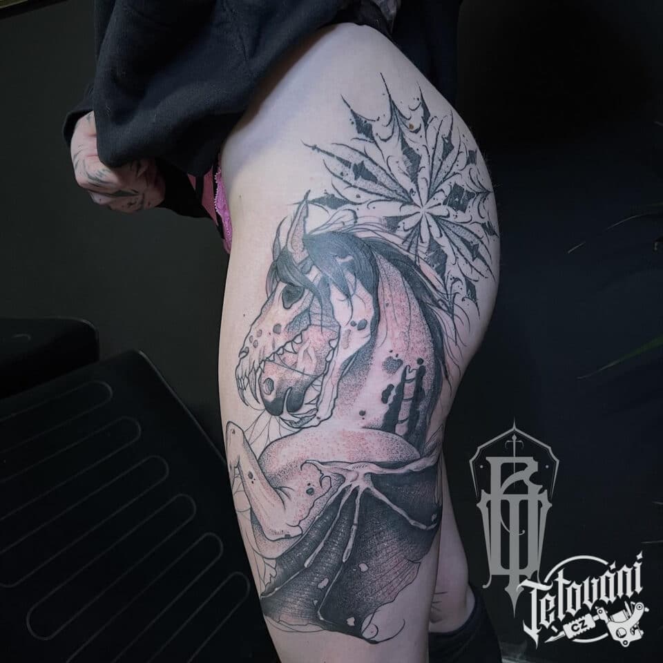Tetování z filmů a pohádek, Testrál z Harryho Pottera na boku stehna