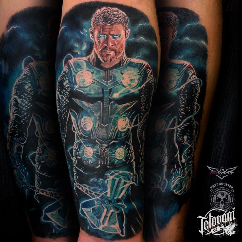 Tetování z filmů a pohádek, Thor, Marvel, Avengers na lýtku