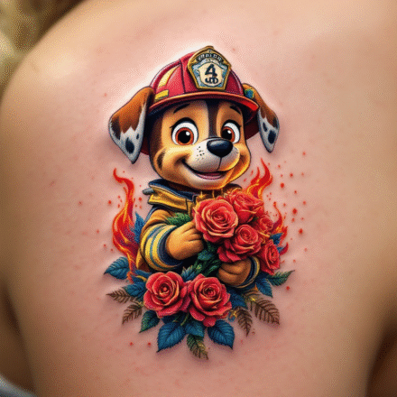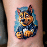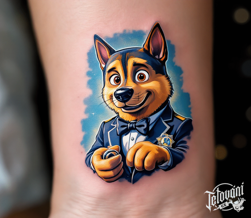 Tetování z filmů a pohádek tlapková patrola, dospělý Chase na předloktí