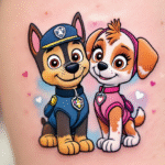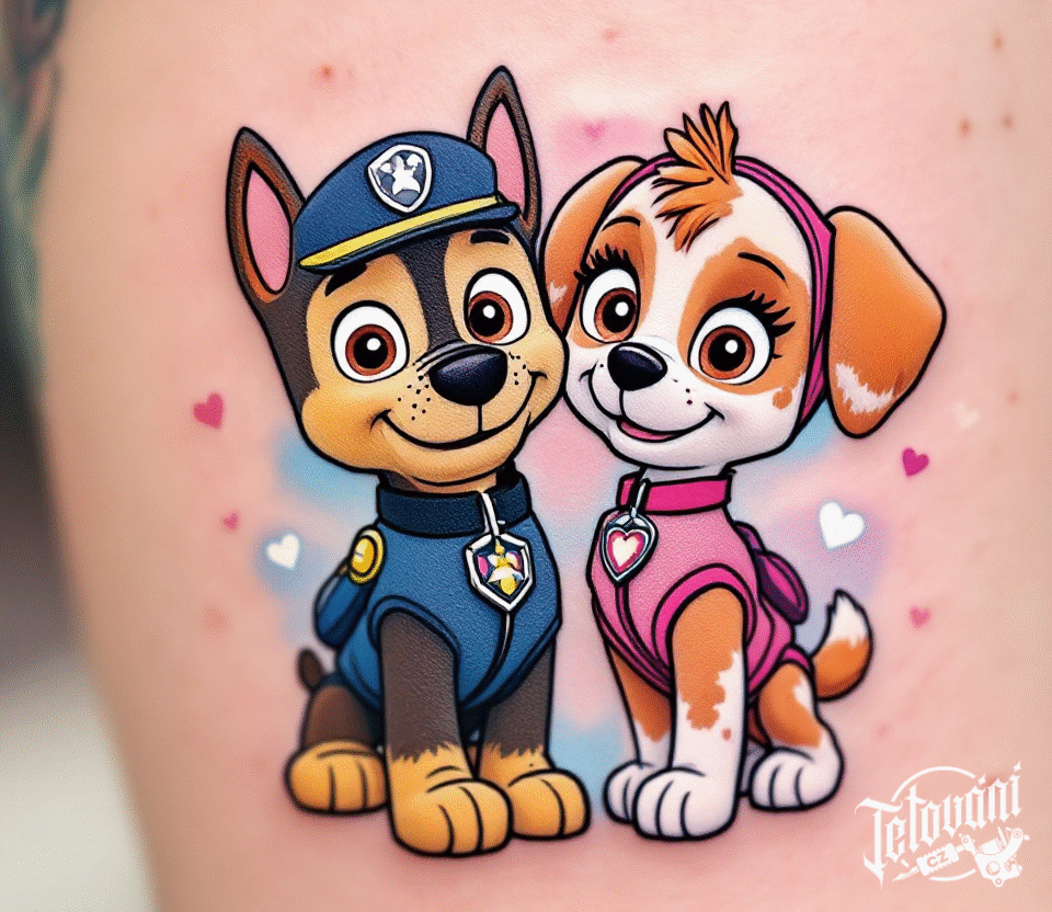 Tetování z filmů a pohádek Tlapková patrola, srdce, láska na předloktí