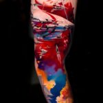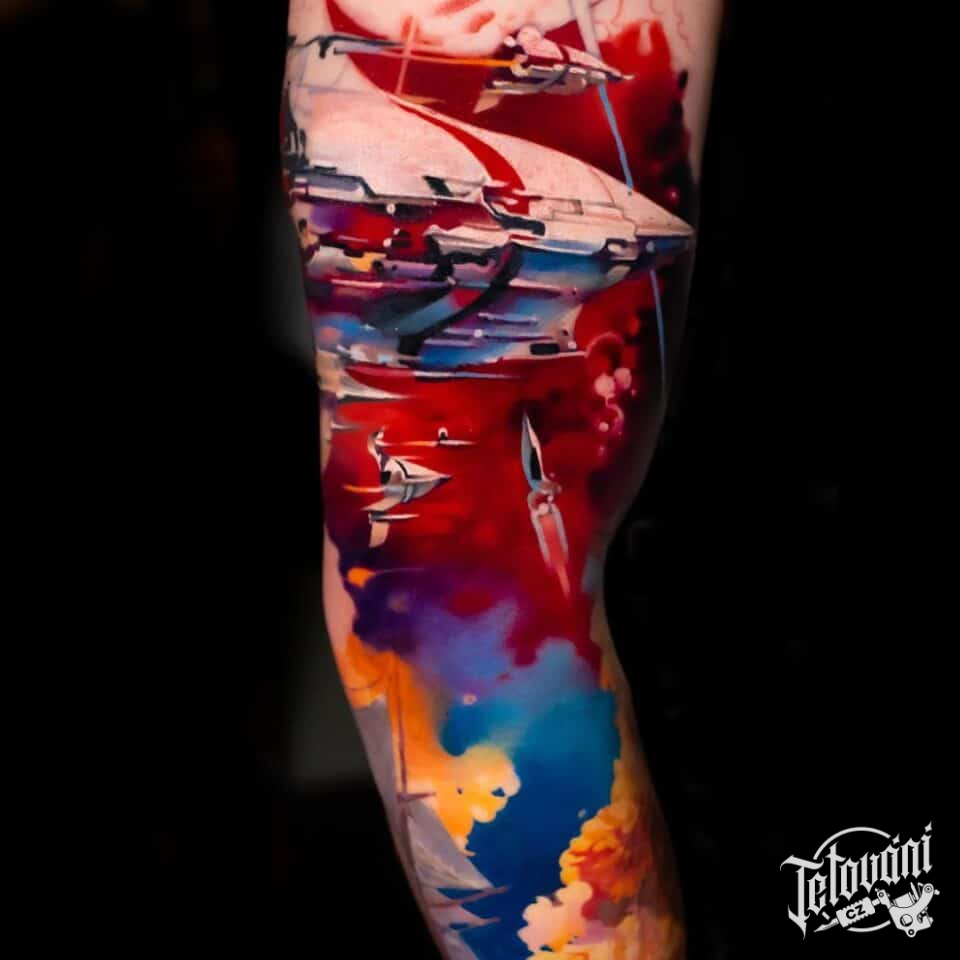Tetování z filmů a pohádek, vesmír a vesmírné lodě na předloktí