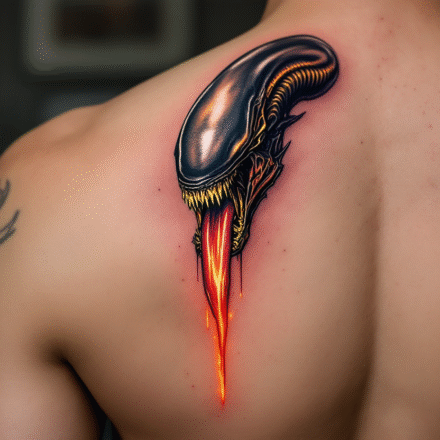 Tetování z filmů a pohádek Vetřelec, nadpřirozená bytost na záda a ruku
